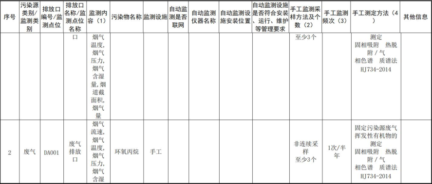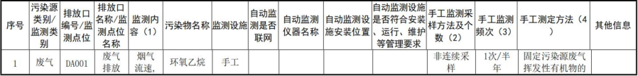 1 | 廢氣 | 廢氣排口 | 環氧乙烷 | 1 次/半年 | HJ732-2014 | |
